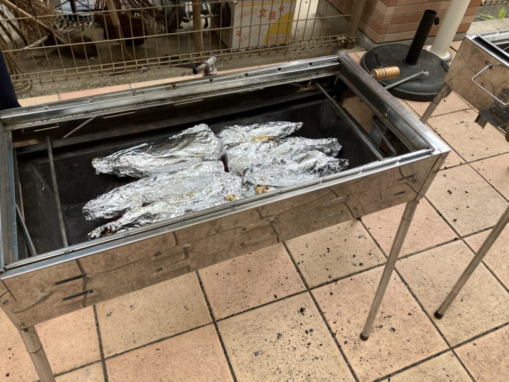 煮物だけでなく、朝採りした新鮮なたけのこを炭火で焼いてふるまう、この季節ならではの行事です!