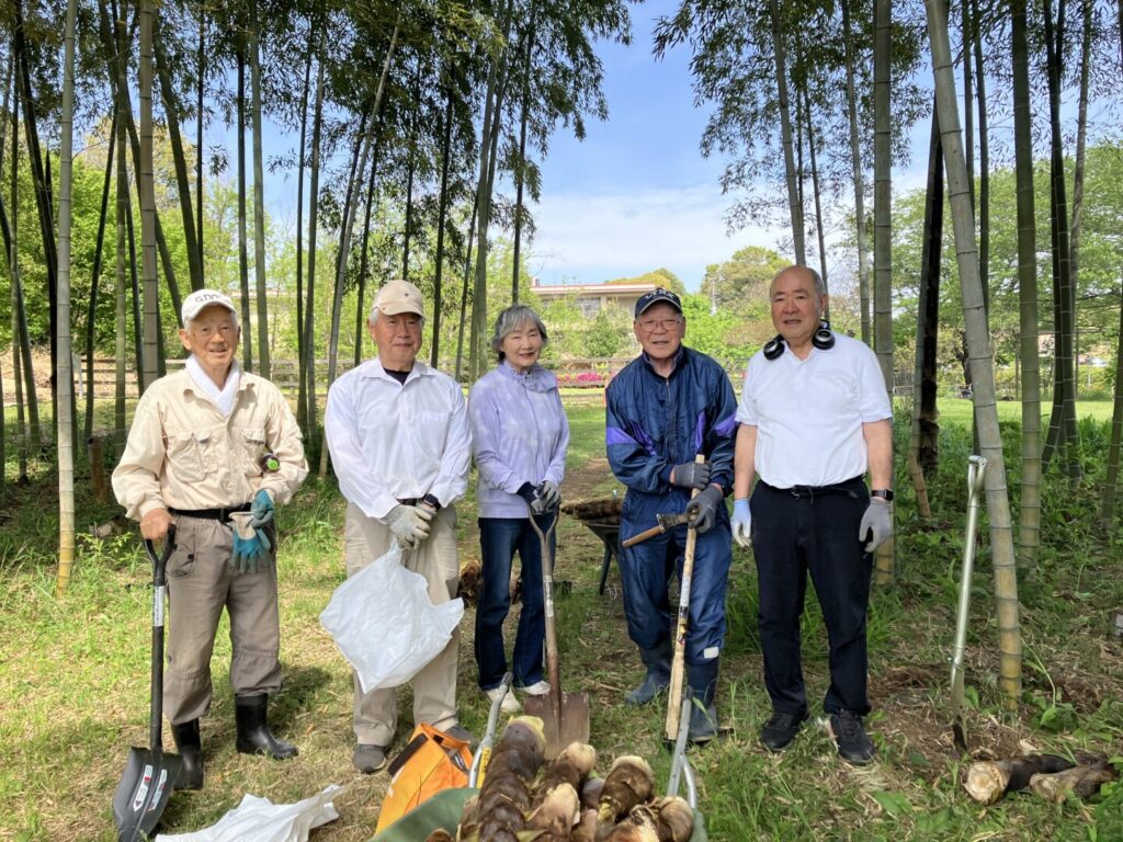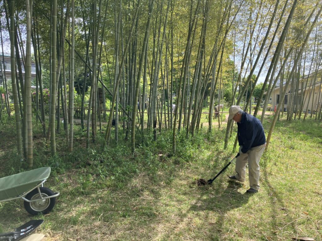毎年4月になると、ケアガーデンの竹林からたくさんのたけのこが出てきます。