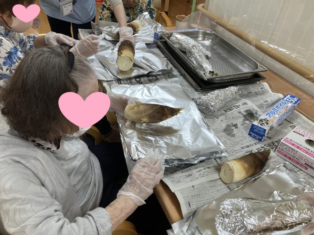 ご入居者様の中には、焼きタケノコを初めて食べるという方もいらっしゃり、
