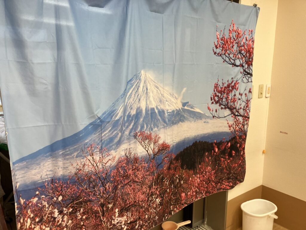 壁には富士山のタペストリーも飾られ、より温泉気分が味わえますね🎵