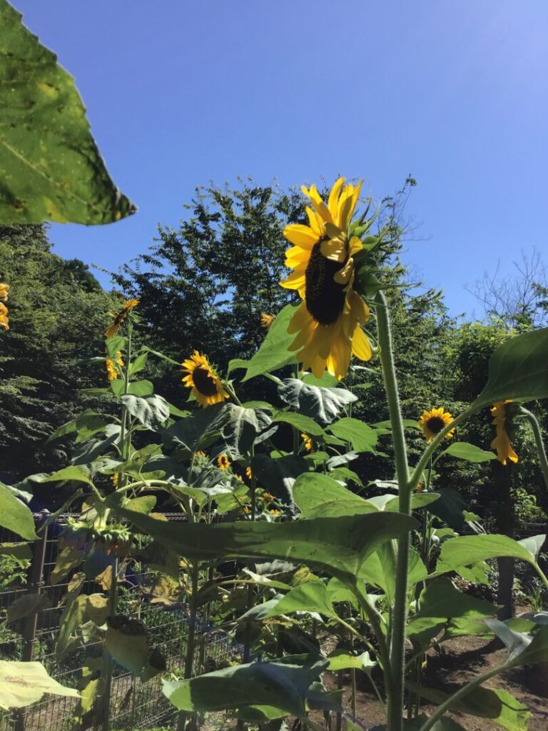 想像していたよりも大きく育ち、中には3m以上に育ったひまわりもありますΣ(・□・;)