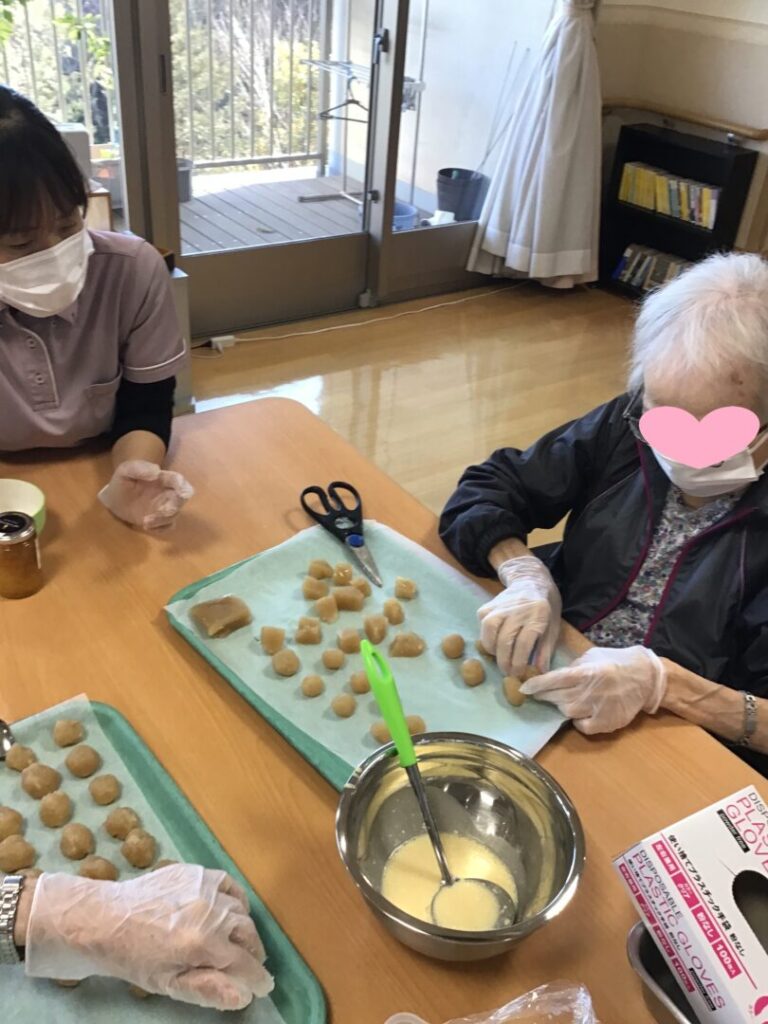 温かいほうじ茶と一緒に召し上がっていただきましたが、1個2個…と手が止まらいご入居者様も🤭