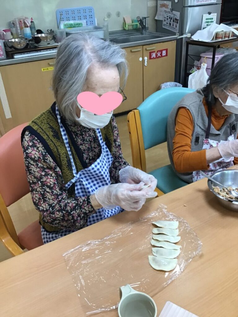 みなさん最初は「できるかな」「手が動くかしらー?」など遠慮がちでしたが、いざ餃子の皮と具を用意すると、
