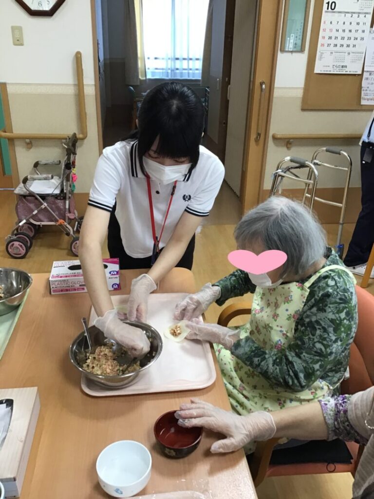 ご入居者様の中には片麻痺の方や指が動きにくい方もいらっしゃるのですが、職員さんと協力して一生懸命作ってくれました🤗いいリハビリになりますね🎵