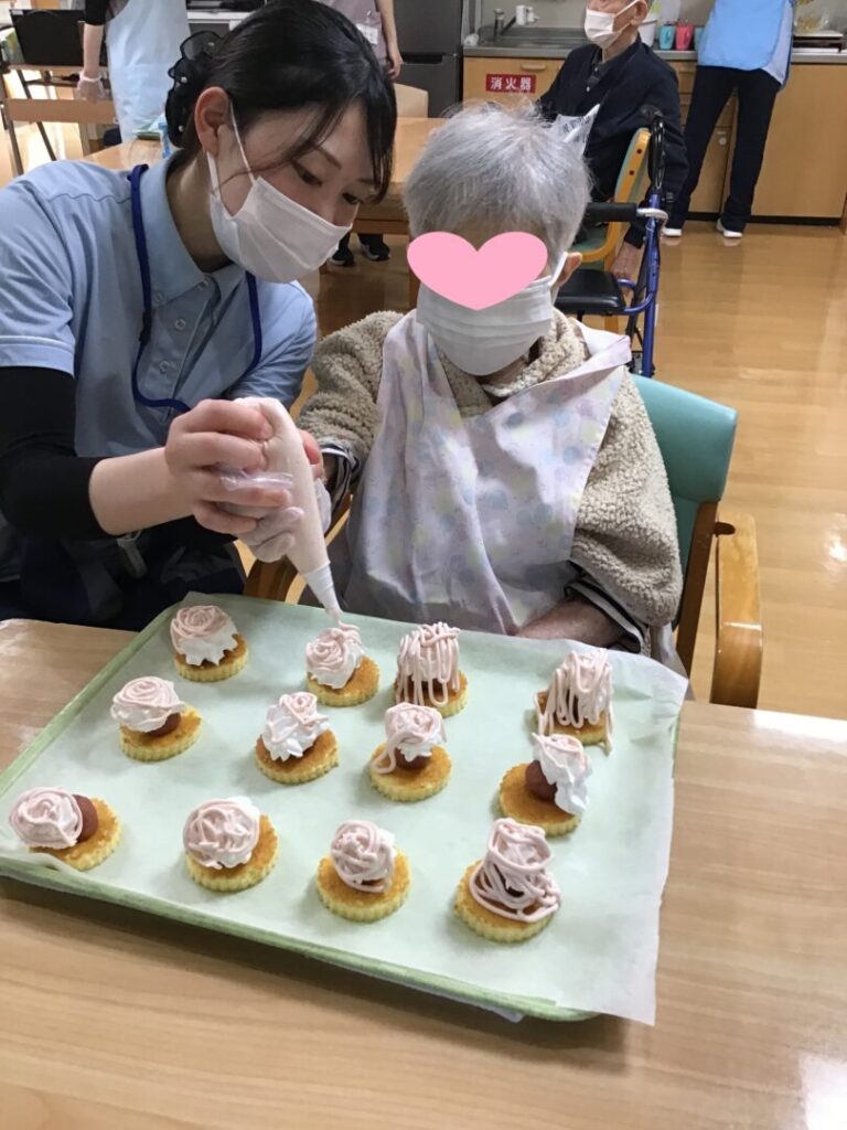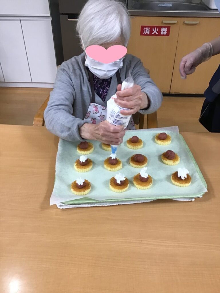 裏ごししたり、クリームをたくさん絞る作業はけっこう力がいるのですが、いいリハビリになりますね!
